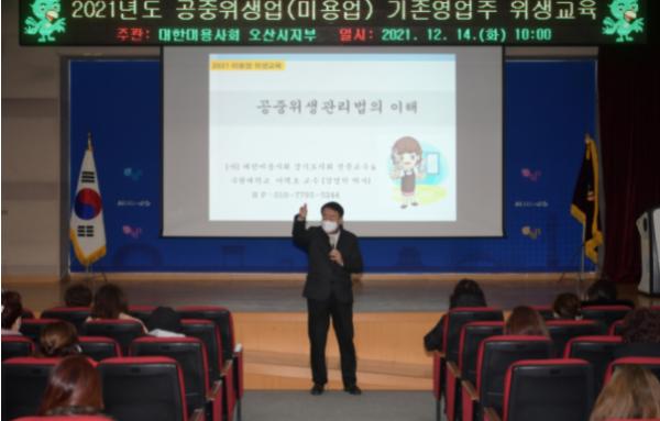 위생교육은 ▲법령교육 - 공중위생관리법 관련 법령해설, ▲ 소양교육 - 미용인의 미래를 위한 지식정보, ▲ 기술교육 - 신기술 실습강의, ▲ 코로나19 방역수칙 - 오산시 식품위생과 식품관리팀에서 코로나19 방역대응 강화에 따른 방역수칙 내용과 개정된 공중위생관리법령에서 영업주가 지켜야 할 영업장 내 준수 및 권고사항, 현 미용업종의 세분화에 대한 자격요건 등의 다양한 내용으로 진행됐다. 현행 공중위생관리법상 미용업 영업자는 매년 3시간 위생교육을 수료해야 하며 집합교육을 참여하지 못한 영업자는 대한미용사회중앙회 홈페이지에서 온라인을 통해 교육을 수료해야 한다.