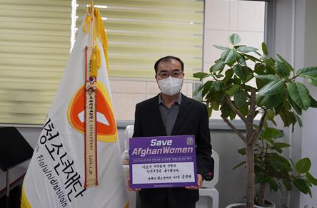 송영완 이사장은 ‘아프가니스탄 여성들의 인권과 안전보장을 촉구합니다.’라는 메시지를 직접 써넣은 팻말을 들고 참여했다.