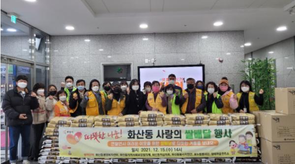 15일 화산동 지역사회보장협의체, 화산동적십자회, 화산동봉사지원단, 효누림봉사단, 화산동행복마을관리소 등 5개 단체 20여명은 연말연시 후원으로 들어온 쌀 130포(10kg)를 소외계층에 직접 전달하며 이들의 안부도 확인했다.