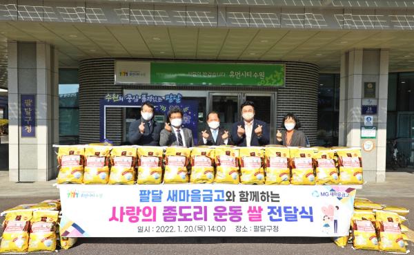 김현광 팔달구청장은 “팔달구는 전형적인 구도심으로 노령층과 저소득층의 거주 비율이 상대적으로 높아 어려운 분들이 많은 곳이다. 설 명절을 맞아 팔달구 관내 어려우신 분들을 위해 온정을 베풀어 준 팔달 새마을금고에 진심으로 감사드리며, 기탁한 쌀은 어려운 이웃에게 정성껏 전달하겠다”라고 전했다.