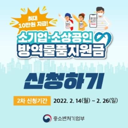 이번 2차 신청은 방역패스가 적용된 소기업·소상공인 중 1차 신청 기간에 신청하지 못한 사업체가 대상이며 2.14.부터 2.25.까지 신청이 가능하다.