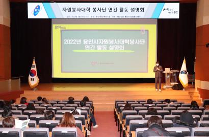 (재)용인시자원봉사센터는 14일 용인시청 에이스홀에서 용인시자원봉사대학 수료생을 대상으로 2022년 연간 활동 설명회를 진행하였다고 밝혔다