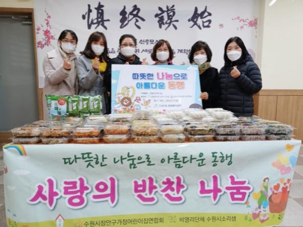 [뉴스시선집중, 윤금아기자] 수원시 장안구 조원1동은 지난 14일, 비영리단체 ‘수원시 소리샘 봉사단’과 ‘장안구 가정어린이집연합회’에서 홀몸노인을 위해 직접 만든 나물, 불고기, 떡 등 반찬 20세트를 전달했다고 밝혔다.