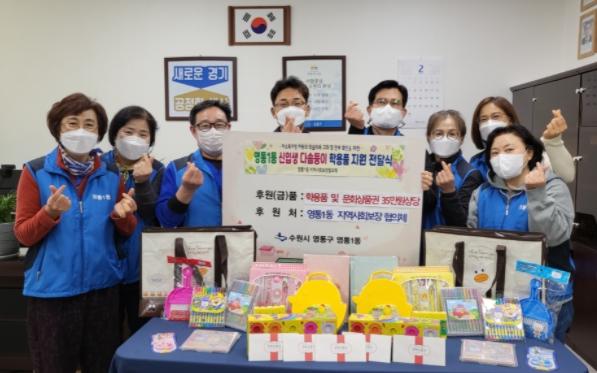 [뉴스시선집중, 윤금아기자] 수원시 영통1동 지역사회보장협의체는 지난 22일, 새학기를 맞이하여 초등학교 입학 축하선물로 관내 저소득 가정 7가구에 학용품세트와 문화상품권을 전달했다.