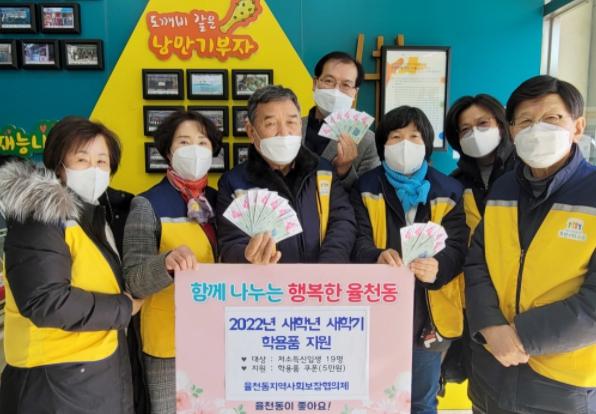 [뉴스시선집중, 윤금아기자] 수원시 장안구 율천동 지역사회보장협의체는 지난 22일, 초·중·고등학교 신입생 자녀가 있는 저소득 19가구에 각 5만원 상당의 학용품 상품권(총 95만원)을 전달했다.