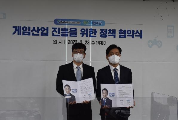 [뉴스시선집중, 이학범기자] 더불어민주당 선거대책위원회 정책본부와 한국게임산업협회가 23일, 게임산업 발전 및 위상 강화와 중소 게임사업자 보호·육성을 위해 제20대 대통령선거의 정책 과제를 체결하는 정책협약식을 진행했다.