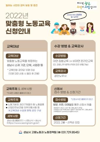 [뉴스시선집중, 박광옥기자] 성남시는 오는 12월 20일까지 아르바이트생, 사회초년생, 외국인 근로자, 고용주 등을 대상으로 수요자 맞춤형 노동교육을 지원한다.