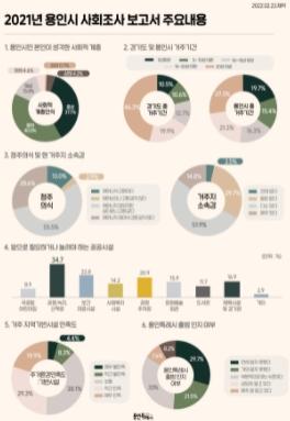 용인시는 23일 관내 표본 추출한 1590가구 만15세 이상 가구원을 대상으로 진행한 ‘2021년 용인시 사회조사 보고서’를 발간하고 시 홈페이지 ‘용인통계’에 게시했다.