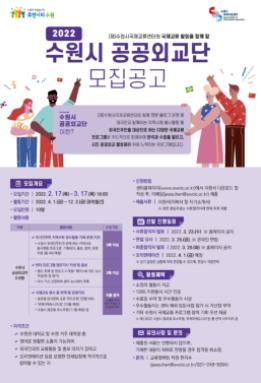 [뉴스시선집중, 윤금아기자] 수원시 국제교류센터가 ‘2022년 수원시 공공외교단 9기’로 활동할 대학생 10명을 모집한다.