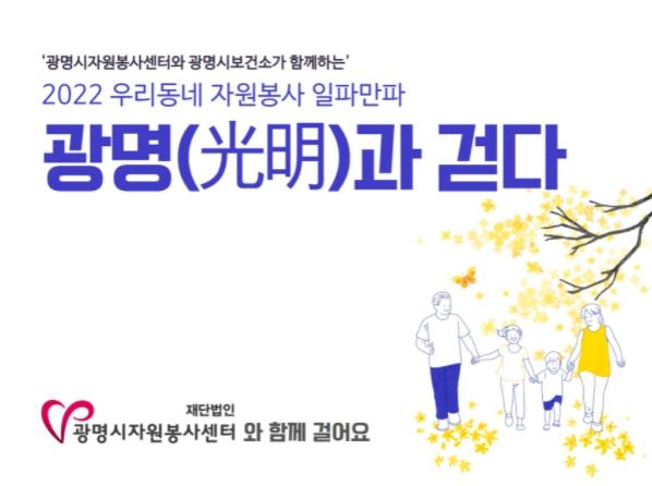 ‘광명(光明)과 걷다’는 3월부터 11월까지 광명시민 누구나 참여 가능하며, 광명보건소의 워크온 어플을 활용하여 걸으면서 환경정화, 공익캠페인, 안전모니터링 등의 활동을 함께 진행하는 자원봉사로 1365자원봉사포털사이트나 광명시자원봉사센터 홈페이지 및 SNS를 통해 자세한 내용을 확인할 수 있다.