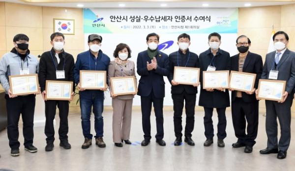 안산시는?3일?납세자의 날을 맞아 지방세를?성실히?납부해?시민의귀감이?되고?자주재원?확보에?기여한?개인?30명과?법인?30개를?성실납세자로?선정해?인증서를?수여했다.
