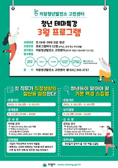 [뉴스시선집중, 박광옥기자] 의왕청년발전소 고천센터에서 3월 테마특강 수강생을 모집한다.