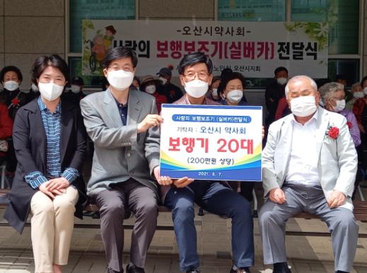 [뉴스시선집중, 박광옥기자] 오산시약사회가 거동이 불편한 어르신을 위한 보행보조기 실버카 20대(230만원 상당)를 대한노인회오산시지회에 전달했다.