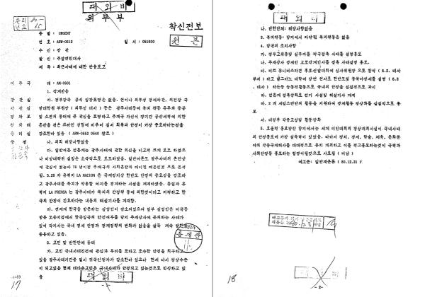 주 멕시코 대사관도 “일간지 및 방송이 대사관이 배포한 자료에 따라 광주사태(광주민주화운동)가 북괴의 배후 조정에 의한 것으로 보도했다”고 보고했다.