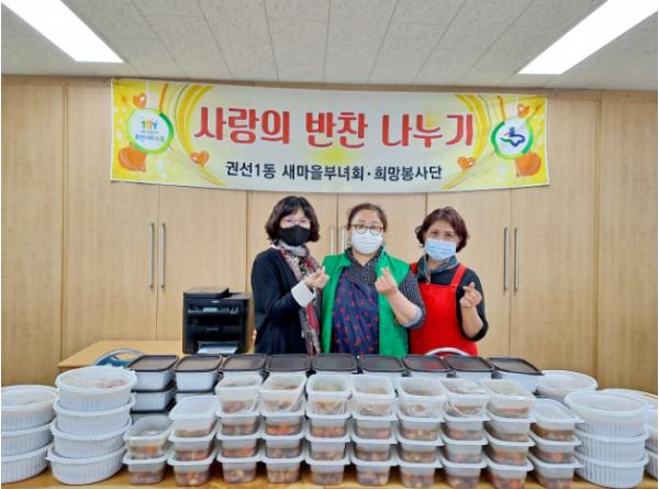 한편, 권선1동 새마을부녀회는 매월 1회 저소득층을 위한 밑반찬 나눔, 김장 담가주기 등 각종 이웃돕기 활동을 하고 있다.