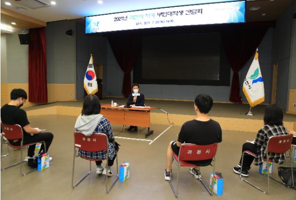 [뉴스시선집중, 김강산기자] 김종천 과천시장은 최근 과천시청 대강당에서 시청 각 부서에 배치돼 근무하고 있는 대학생과 간담회를 실시했다.