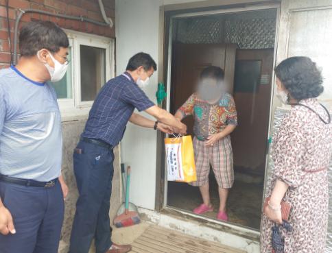 동 행정복지센터는 지난 2일 지역사회보장협의체 위원들과 함께 지역 내 독거어르신과 비닐하우스 등 주거 취약시설에 거주하는 저소득 72가구를 찾아 온열질환 예방을 위한 쿨스카프, 쿨토시 등을 전달하고 안부를 살폈다. 방문은 코로나19 방역수칙을 철저히 준수한 가운데 이뤄졌다.