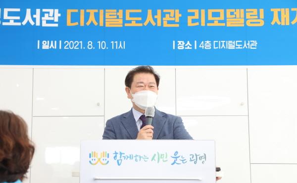 박승원 광명시장은 “지속되는 코로나19 상황으로 예전처럼 많은 시민들이 자유롭게 도서관을 이용하지 못해 안타까운 심정이다. 시민의 눈높이 맞춰 복합문화 공간으로 새롭게 조성한 디지털도서관에서 서로 소통하고 다양한 정보를 얻으시길 바란다”고 말했다.