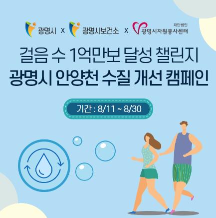 광명시보건소와 광명시자원봉사센터에 따르면 8월 11일 ~ 30일 20일간 시민들이 참여한 걸음이 모바일 워크온 앱 기준 1억보 이상에 도달하면, 광명시자원봉사센터의 사업비와 지역사회 기부를 활용하여 안양천-목감천 수질 개선을 위한 EM흙공 등을 구입하고 9~10월 중 시민과 함께 안양천-목감천 수질 개선 자원봉사활동을 진행할 예정이다.