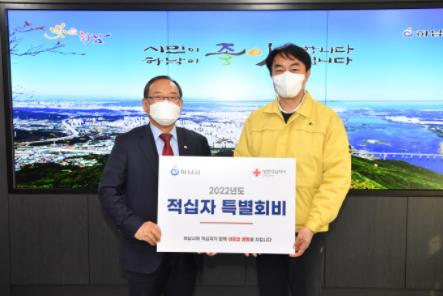 [뉴스시선집중, 이학범기자] 하남시는 지난 20일 시장 집무실에서 2022년도 적십자 특별회비 100만원을 대한적십자사 경기도지사에 전달했다고 밝혔다.